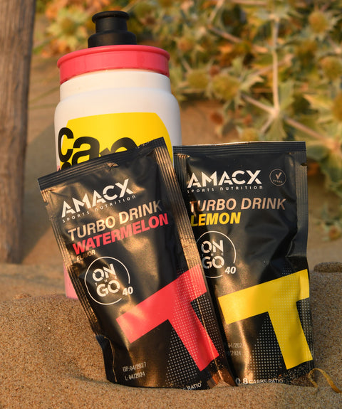 Die Amacx Turbo Line wurde für intensive und lang anhaltende sportliche Momente entwickelt. Die Produkte der Turbo Line enthalten ein einheitliches Verhältnis von 1:0,8 von Glucose und Fructose und enthalten Kohlenhydrate in Variationen zwischen 40, 60 und 80 Gramm. Dieses Verhältnis (1:0,8) ermöglicht zudem eine hohe Kohlenhydratzufuhr von bis zu 120 Gramm pro Stunde und der erhöhte Natriumgehalt unterstützt den Flüssigkeitshaushalt.